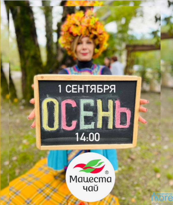 Юные гости чайной террасы "Мацеста чай" смогут познакомиться с ЦАРИЦЕЙ ОСЕНИ и её классными друзьями Машей и Медведем, а ещё получить очень вкусный подарок. В программе танцы, песни, конкурсы, активности, подарки!